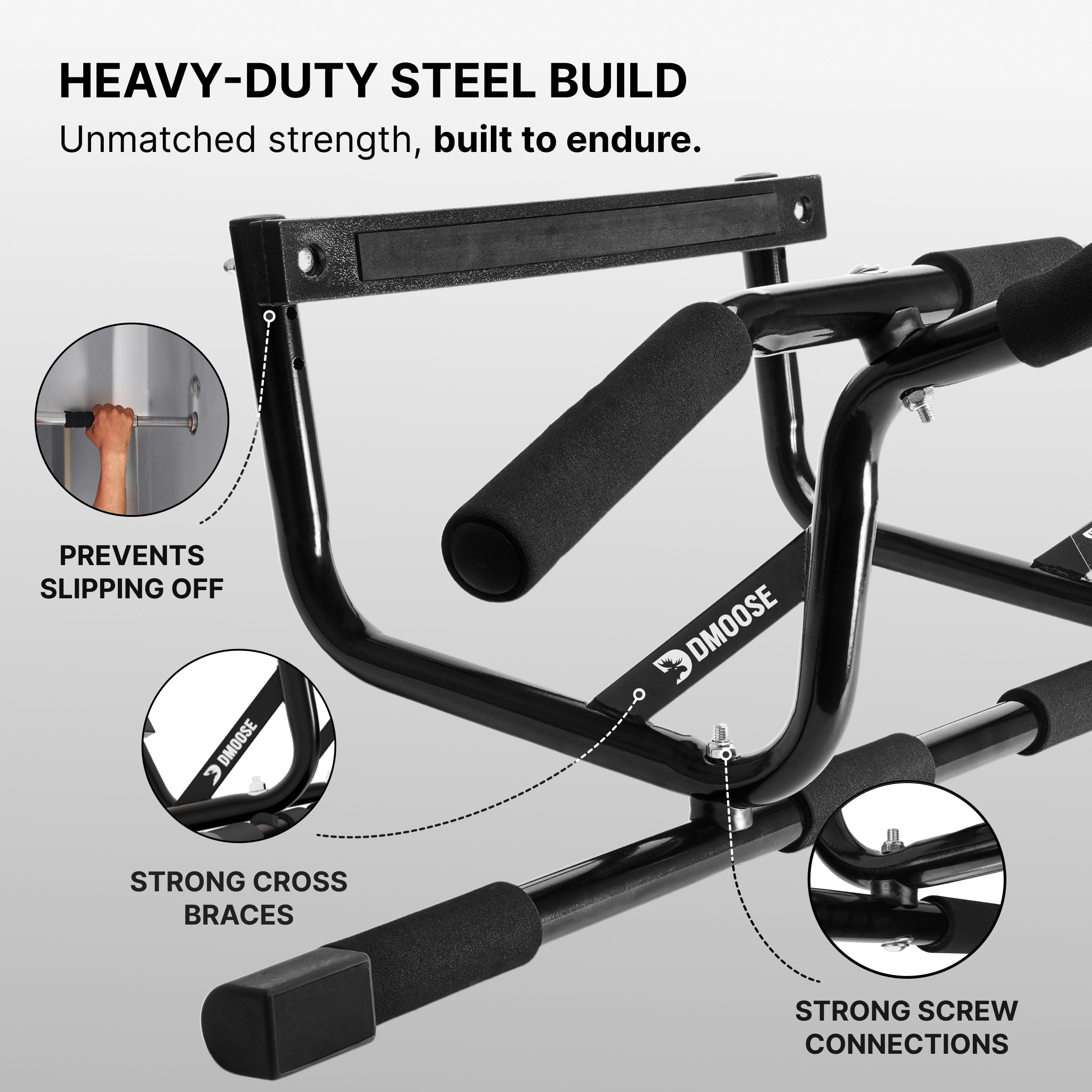 Enhance your workouts with the DMoose Pull Up Bar—adjustable, secure, and versatile for effective upper body training at home.