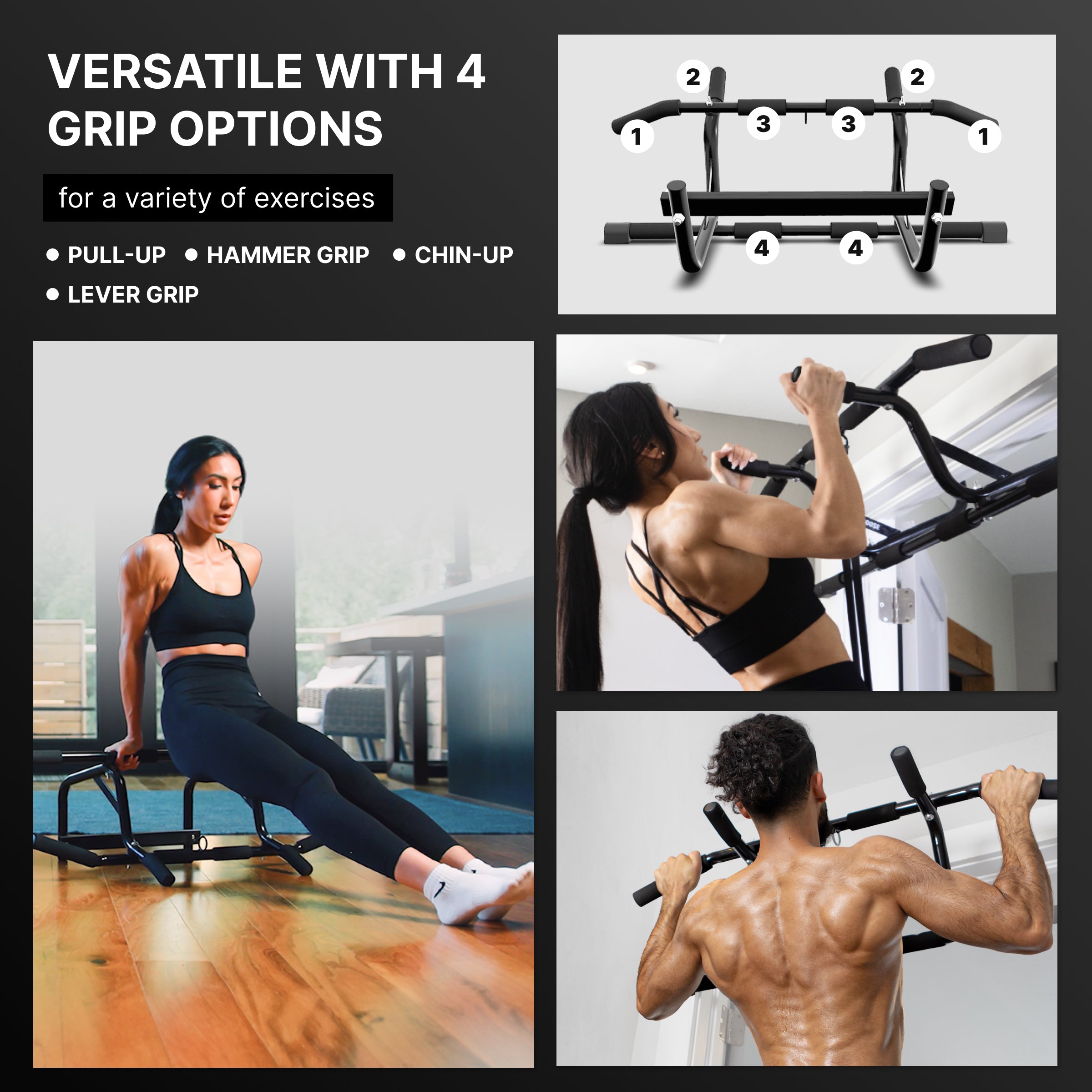 With multiple grip options and a stable, no-slip design, the DMoose pull up bar lets you hit your back, arms, and core with precision.
