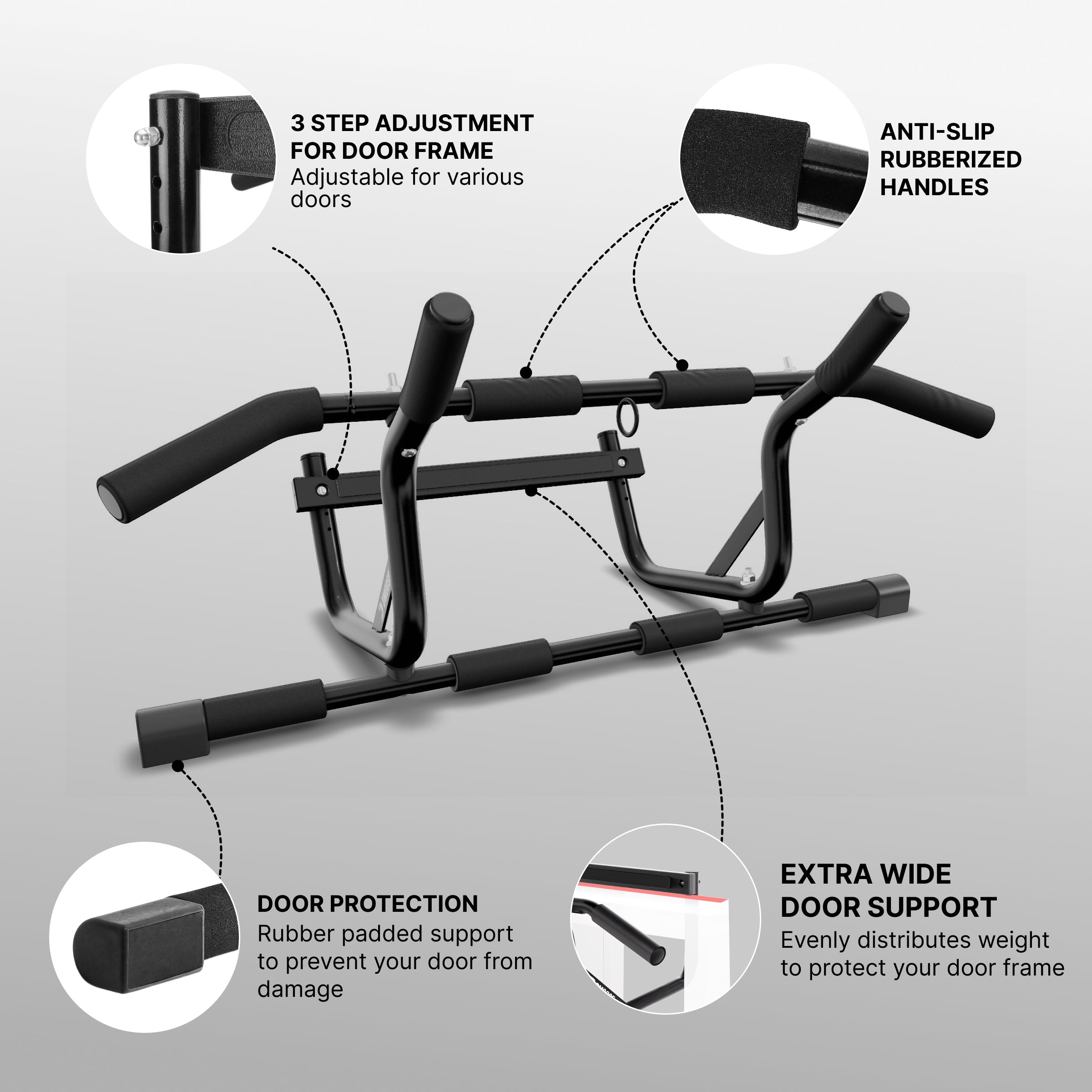 Beyond pull-ups, use it for hanging leg raises, crunches, and even as an anchor for resistance bands, giving you a complete upper body workout.