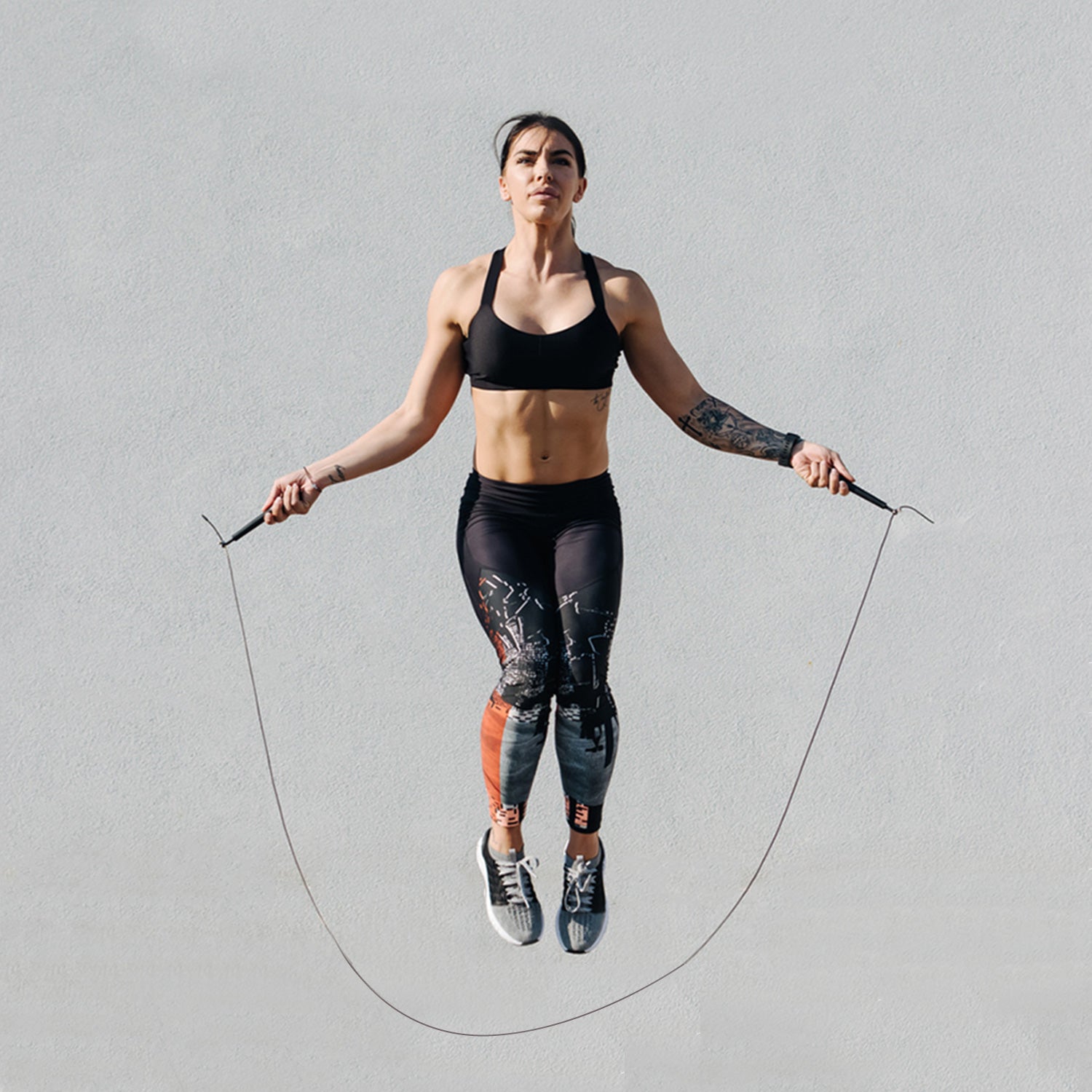 A woman skipping by using DMoose rope for cardio training