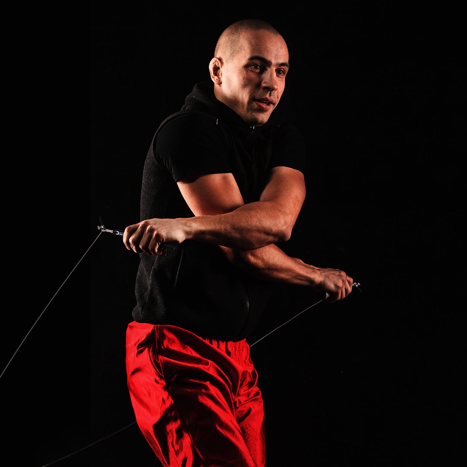 • A man using DMoose workout jump rope for skipping