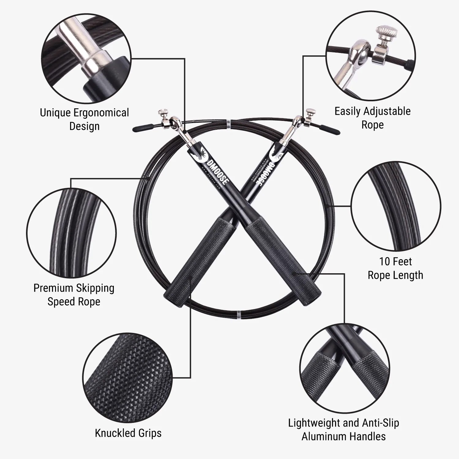 Why make things complicated when you can take advantage of a simple, time-tested equipment JUMP ROPE. Jump rope for exercise has it all! It's a total body workout & is one of the oldest fitness tools; great for burning calories with evident results and multi-benefits. It is ideal for HIIT, cardio, MMA Conditioning, and fat loss. The DMoose fitness jump rope rotates at an amazing speed, thus giving you a worthwhile workout.