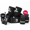 The kit includes everything you need to train smarter - your choice of belt (10mm, 5mm, neoprene, or nylon), a pair of 7mm knee sleeves, wrist wraps, lifting straps, and bonus steel hooks. It’s a complete bundle designed to cover all the essentials for safer and more effective lifting.